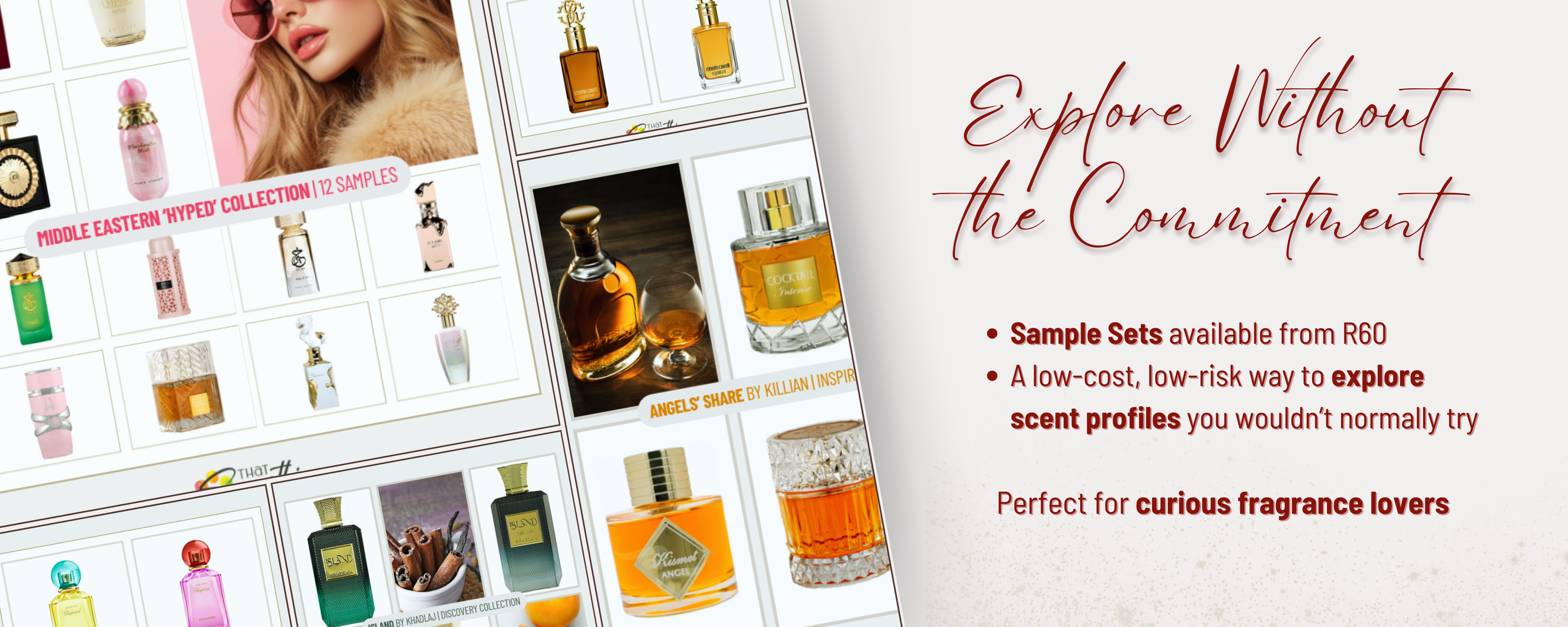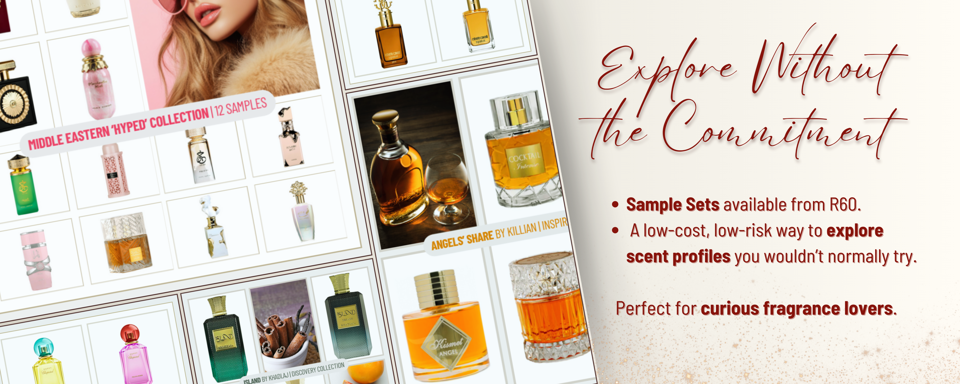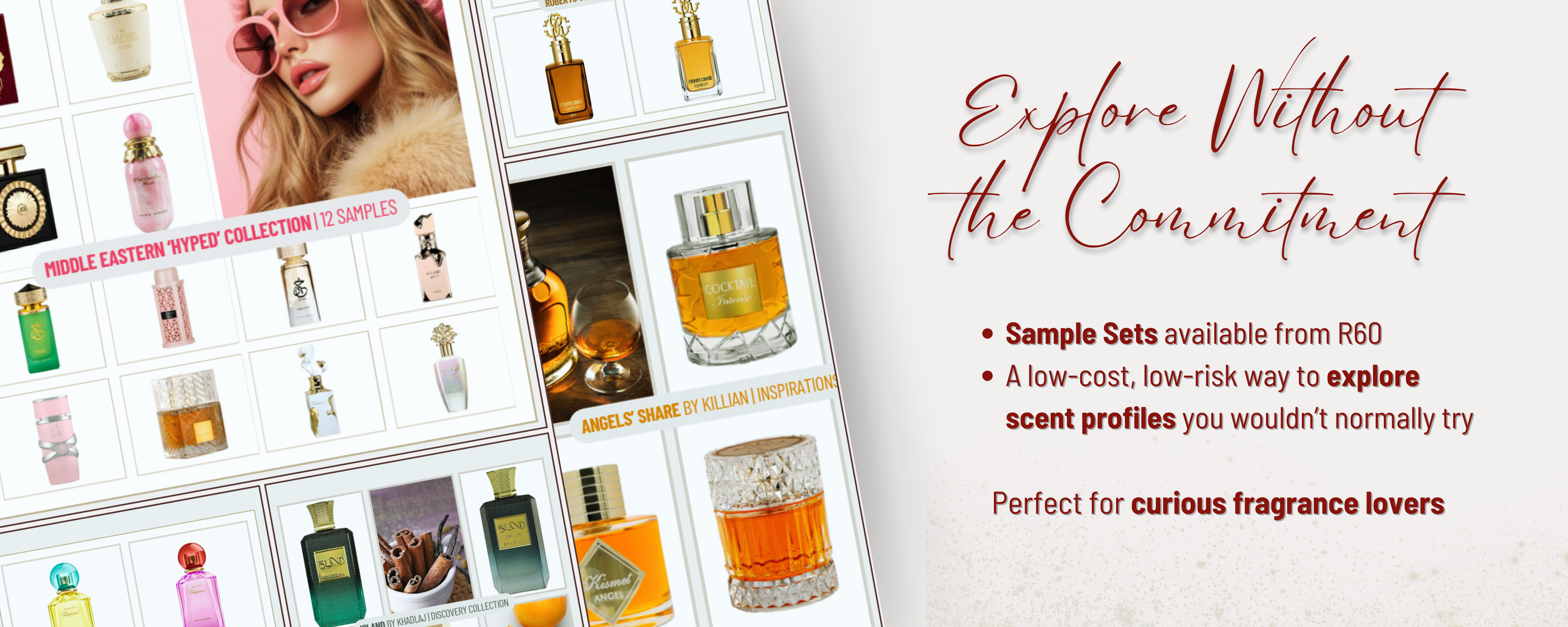 Discover a carefully curated collection of designer icons, opulent Middle Eastern blends, niche artistry, and hidden celebrity gems - all in convenient sample and travel sizes.